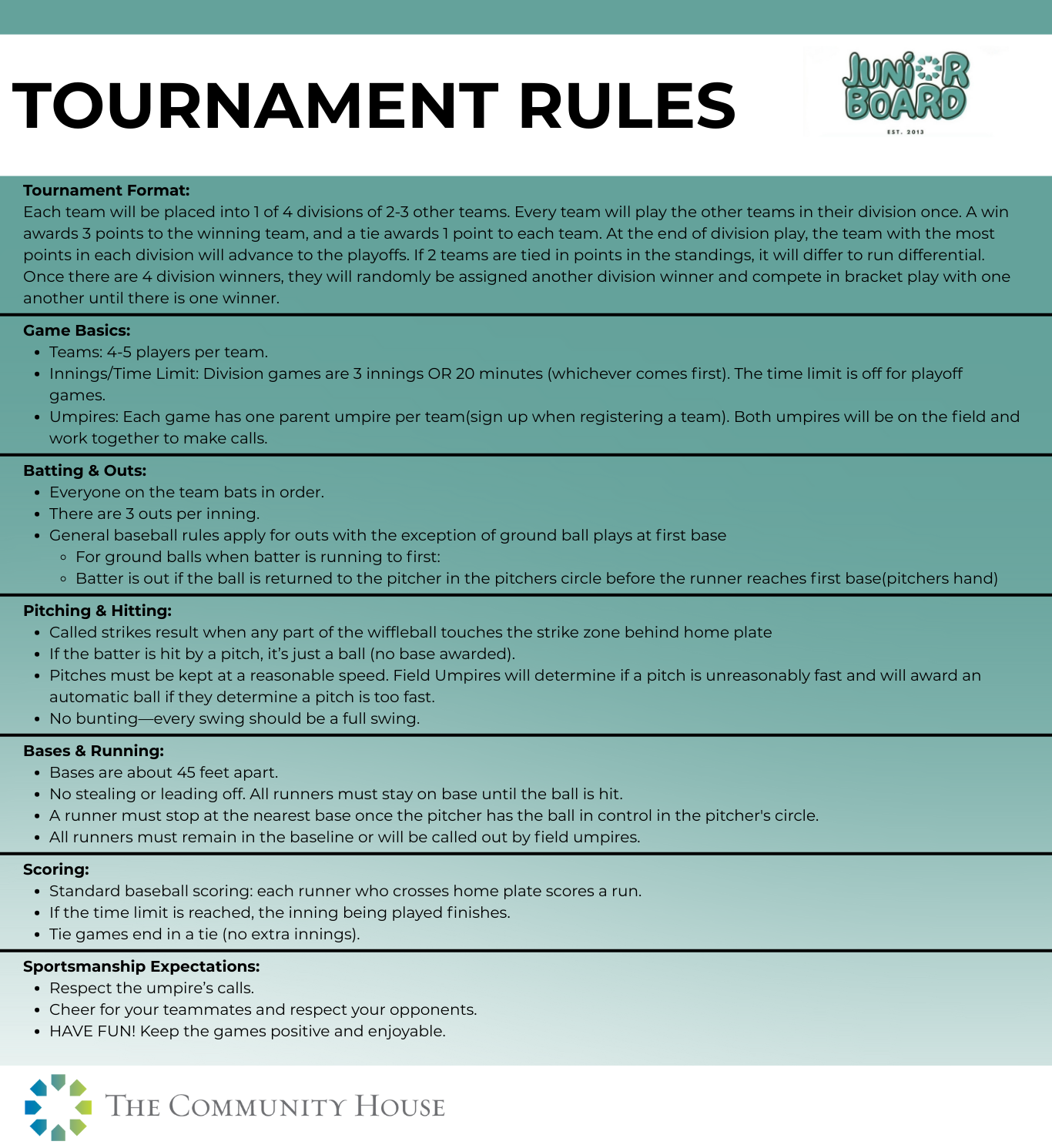 Young athletes will gather and hit the field for an epic day of wiffle ball tournament, raising vital funds and giving back to support youth programs at The Community House.